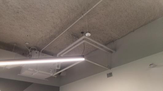 It was extremely quiet in this space, so that very little noise was masked from above. This made the structure-borne noises from above more audible than they would typically be in an office space. By using a sound-masking system, the “thuds” from above may be completely inaudible.